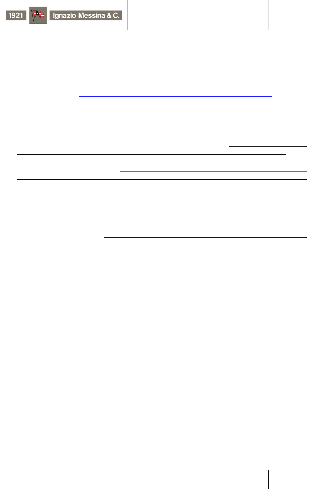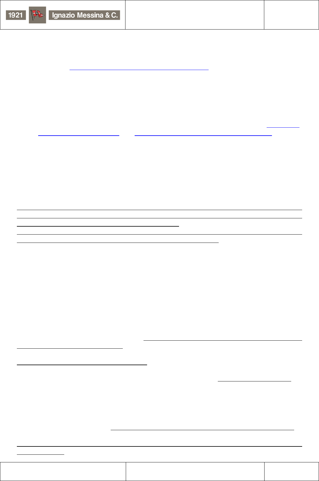 port. In case of vessel departure on Saturdays, Sundays or Italian Holidays, the deadline to